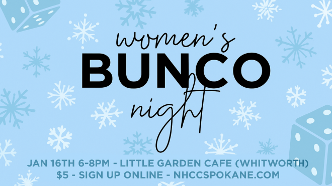 All women, who are in junior high or older, are invited to Bunco on Friday, January 16th, from 6:00-8:00p. Join us at the Little Garden Cafe, Whitworth location, for a night of...
